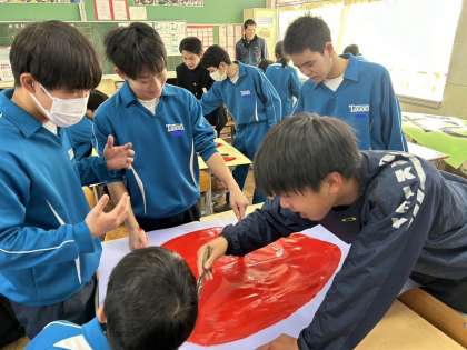 学校到着時、バスの中から2年生が目にしたものは、迎えに来てくれた家族と「おかえりなさい」のメッセージでした。それと同時に家族や先輩たちの温かい心も感じ取ったことと思います。