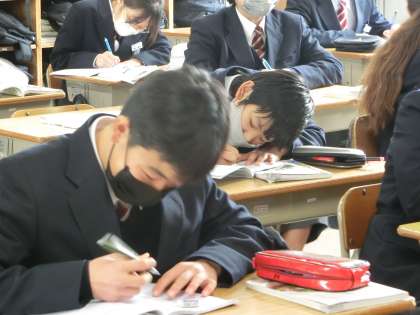 「マグマの粘り気と火山の関係は?」をテーマに学習が進められていました。身を乗り出し、真剣な表情で学習に向かっています。