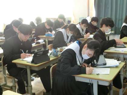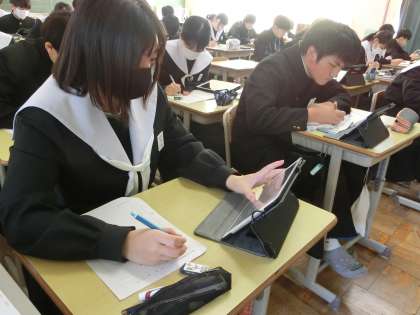 「説得力のある構成で伝えよう」の単元もいよいよ終盤に入りました。今回は学習のまとめのスピーチに向けて、「説得力のある構成」を意識して原稿を考えていました。真剣な表情が印象的でした。