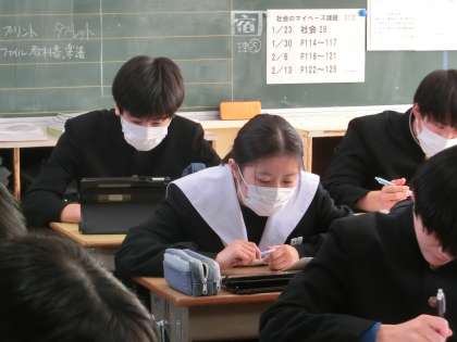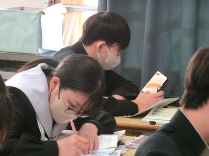 「説得力のある構成で伝えよう」の単元もいよいよ終盤に入りました。今回は学習のまとめのスピーチに向けて、「説得力のある構成」を意識して原稿を考えていました。真剣な表情が印象的でした。