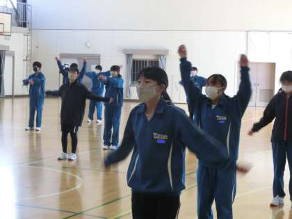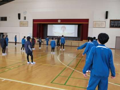 ダンスの学習に入っていました。本校の体育祭の準備運動のもととなったダンスに挑戦です。映像を見たり、仲間の楽しそうな雰囲気からどんどん調子が上がっていきます。まずはリズムに乗って体を動かし、笑顔で楽しむことから始めてほしいと思います。