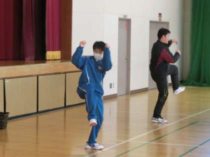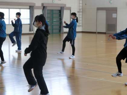 ダンスの学習に入っていました。本校の体育祭の準備運動のもととなったダンスに挑戦です。映像を見たり、仲間の楽しそうな雰囲気からどんどん調子が上がっていきます。まずはリズムに乗って体を動かし、笑顔で楽しむことから始めてほしいと思います。