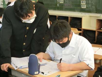 入試対策に取り組んでいました。まずは個人でしっかり取り組んだあと、解答・解説が配付されたタイミングで仲間同士での確認が始まります。