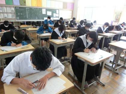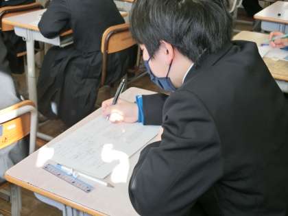 自然教室明けの2年生。登校初日から来週に迫った学習診断テストに向けて、プレテストに取り組んでいました。