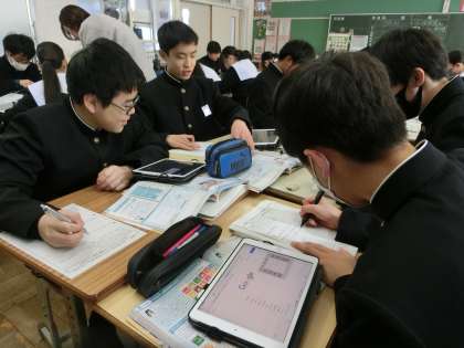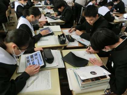 「SDGsのゴールは、どのような課題と関連しているのか?」をテーマに学習が進められていました。自分の考えを仲間に伝えながら、意見やアドバイスをもらっています。モチベーション高く学習に向かう雰囲気は、今も衰えていません。