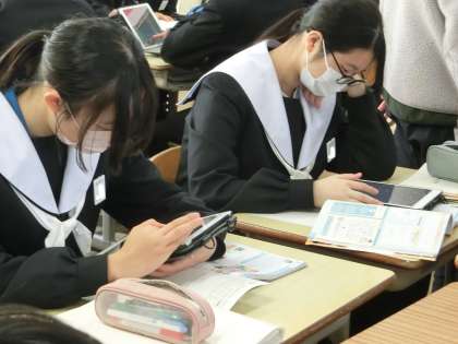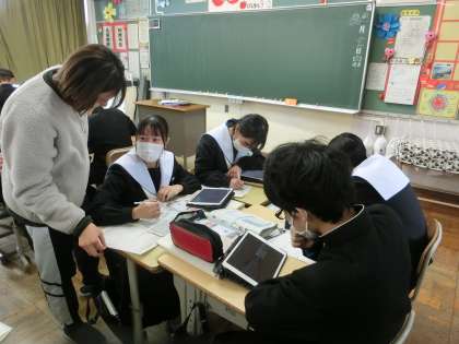 「SDGsのゴールは、どのような課題と関連しているのか?」をテーマに学習が進められていました。自分の考えを仲間に伝えながら、意見やアドバイスをもらっています。モチベーション高く学習に向かう雰囲気は、今も衰えていません。