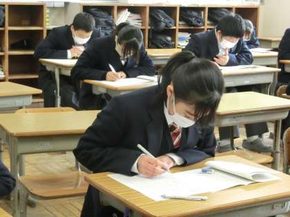 2週間後に実施される学習診断テストに向けて過去の問題に挑戦していました。出題数や問題のレベルなどテストの雰囲気を確認しつつ、自身の弱点も探していきます。授業はもちろん、家庭での学習もレベルが上がるよう、学年部の教師も工夫しています。
