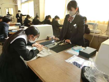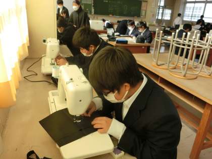 裁縫の学習で「エコバッグ」の製作に取り組んでいました。回を重ねるごとに上達してきたミシンの操作。それぞれが一人で活動を進めていくようになってきました。でも、どうしてもの時は仲間を呼びます。声をかけられられれば、すぐに仲間のもとに向かう様子に心が温かくなりました。