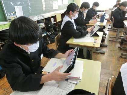 「SDGsのゴールは、どのような課題と関連しているのか?」をテーマに学習が進められていました。難しいテーマにも果敢に挑戦しています。義務教育の集大成の課題といったところです。