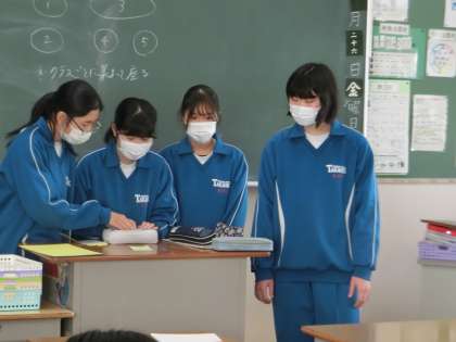 自然教室から明けて、5時間目までは学習診断テストのプレテストに取り組んだ2年生。息つく暇なく6時間目は「3年生を送る会」の実行委員会をスタートさせていました。