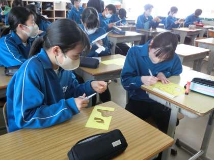 自然教室から明けて、5時間目までは学習診断テストのプレテストに取り組んだ2年生。息つく暇なく6時間目は「3年生を送る会」の実行委員会をスタートさせていました。