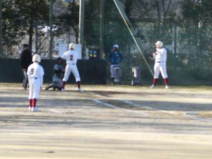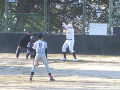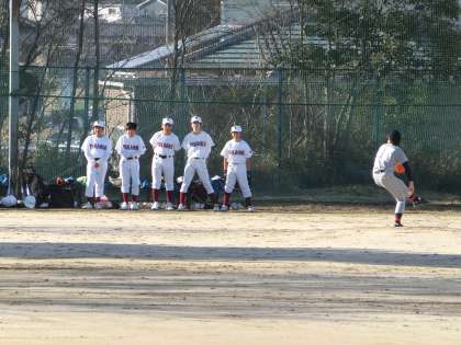 写真は、野球部の練習試合の様子です。保見中学校にお越しいただきました。寒い中でお練習試合でしたが、どちらのチームもよく声が出ており、活気のあるゲームでした。この練習試合を通して、様々な課題を見つけることもできました。