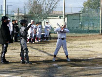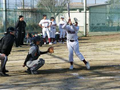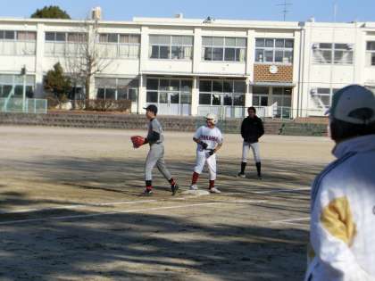 写真は、野球部の練習試合の様子です。保見中学校にお越しいただきました。寒い中でお練習試合でしたが、どちらのチームもよく声が出ており、活気のあるゲームでした。この練習試合を通して、様々な課題を見つけることもできました。