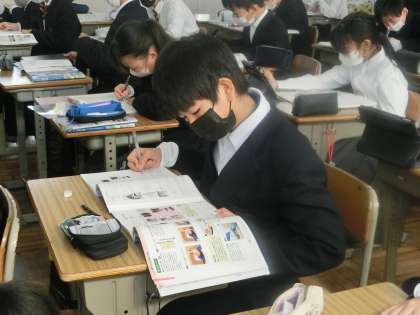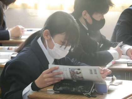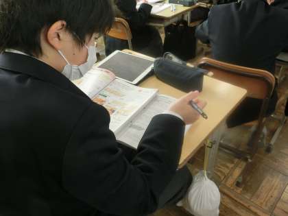 木製品づくりもひと段落し、今回から定期テストに向けて、学習した内容の総復習に取り組んでいました。テキストや教科書で丁寧に確認(復習)していました。