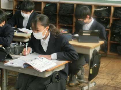 1/29 1-1 授業の様子を思い出しながら… 3 公開日 2024/01/29 更新日 2024/01/29 各学年から 1年1組の技術科の授業の様子です。 木製品づくりもひと段落し、今回から定期テストに向けて、学習した内容の総復習に取り組んでいました。テキストや教科書で丁寧に確認(復習)していました。