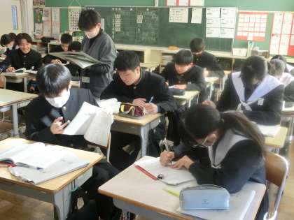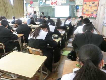 「生き方についての考えをまとめよう」の単元で、「筆者の考えについて話し合おう」をテーマに学習が進められていました。自分の考えをしっかりともったうえで、仲間と意見交換をしています。学習に常に前向きに取り組んでいる様子が印象的でした。
