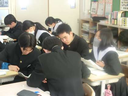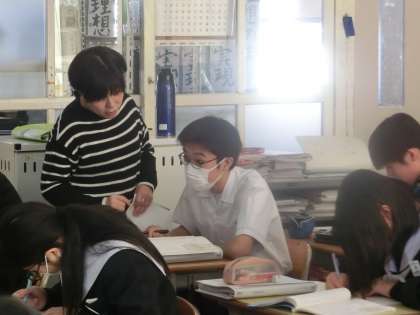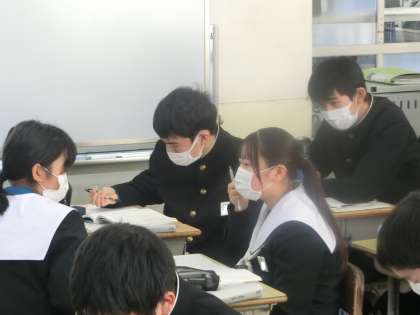「生き方についての考えをまとめよう」の単元で、「筆者の考えについて話し合おう」をテーマに学習が進められていました。自分の考えをしっかりともったうえで、仲間と意見交換をしています。学習に常に前向きに取り組んでいる様子が印象的でした。