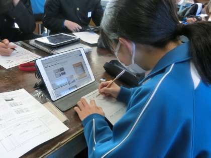 木彫の学習で木製コースターづくりに取り組んでいきます。今回はそのアイデアスケッチを描いていました。家庭でも使えるものなので、この先も飽きない、自分の気に入ったデザインで作品を完成させてほしいと思います。