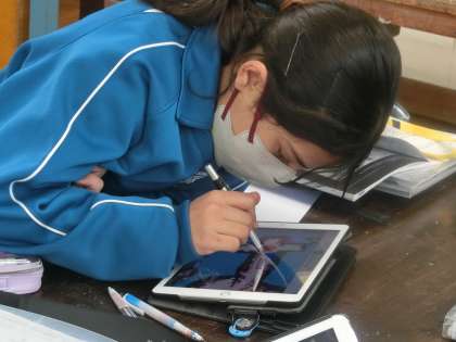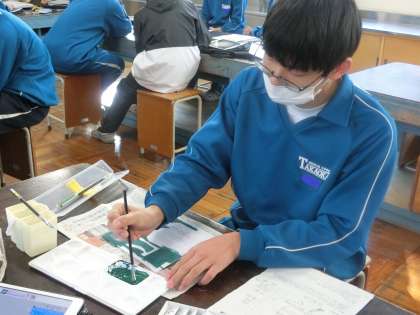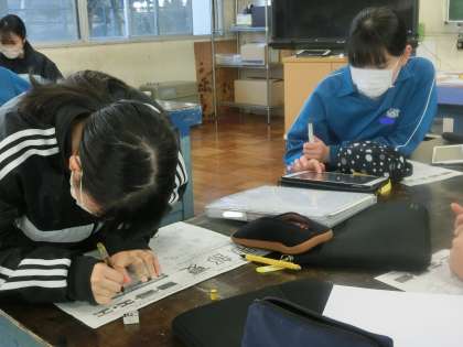 シンボルネームの作品づくりに向け、「自分を象徴するイラストを描こう」をテーマに活動が進められていました。「これぞ自分!」と思える名前のレタリングと象徴するイラストを描き込んでいます。出来上がりを想像しながら、集中して取り組んでいました。