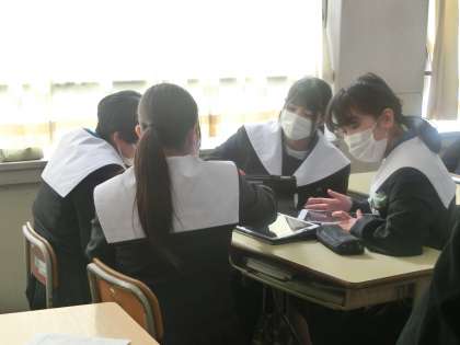 プログラミングの学習として取り組んできた「近未来メッセージアプリ」の開発。生徒たちのアイデアがいよいよ形になりつつあります。そこで今回はグループに分かれ、相手を惹きつけるプレゼン内容を考えていました。必要性の主張、新たな提案、最後に決めゼリフと「神プレゼン」になるよう考えていきます。どんなアプリがどのように紹介されるのか楽しみになってきました。