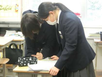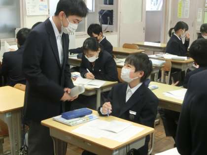 明日に控えた学習診断テストに向け、直前の追い込みです。教科担任や仲間に不安な部分を積極的に質問しています。今日の夜の家での学習に役立ててほしいと思います。