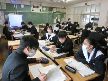 「誰かの代わりに」という読みものを通して、自分の生き方について考えをまとめる学習が行われていました。初めて読んだあと、共感(納得できること)、反対(納得できないこと)、疑問(分からないこと)をグループで出し合っていきます。様々な意見を聞き、仲間の視点や考え方にも触れることができました。