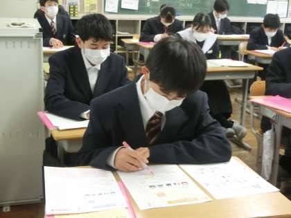 翌日に控えた学習診断テストに向けて、直掩の追い込みです。先日取り組んだ過去問の解説を確認したあと、明日のテストでしっかりと実力が発揮できるように勉強していました。
