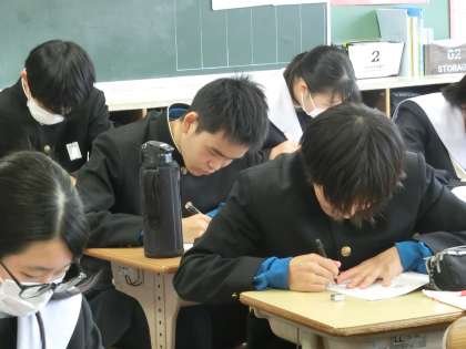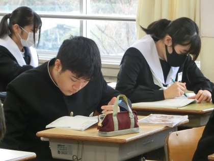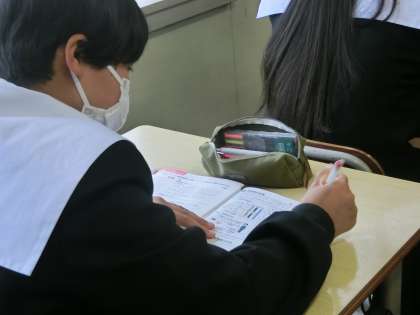 入試対策に取り組んでいました。これまで解いてきたテキストを一気に見返したり、プリントの間違えた部分を解き直したりしています。また、学習用タブレットを使ってたくさんの問題にあたっている生徒もいました。