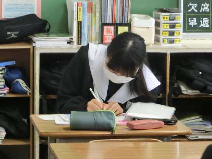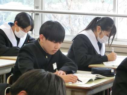 入試対策に取り組んでいました。これまで解いてきたテキストを一気に見返したり、プリントの間違えた部分を解き直したりしています。また、学習用タブレットを使ってたくさんの問題にあたっている生徒もいました。