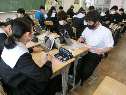 3年3組の社会・公民分野の授業の様子です。