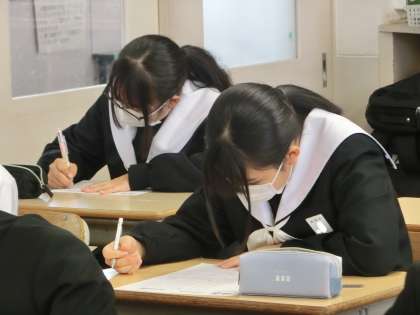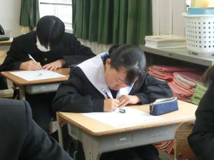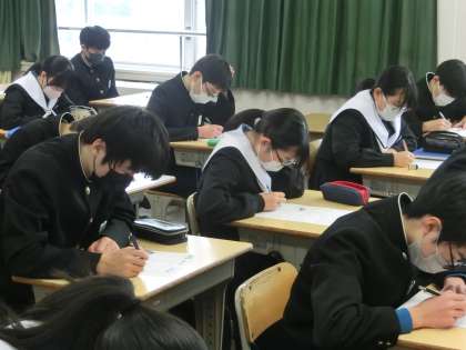入試対策のプリントに取り組んでいました。日を追うごとに、問題を解くときの集中力が増してきているように感じます。今の雰囲気を入試本番で、また、進学後の授業中でも維持してほしいと思います。