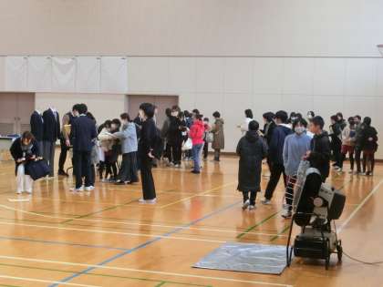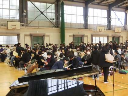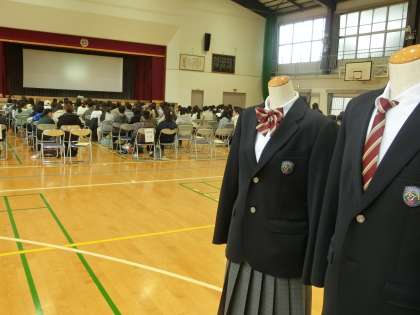 本日の午後、校区の小学校から120名の6年生とその保護者の方々にお越しいただき、「入学説明会」を開催しました。
