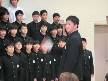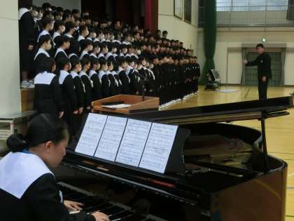 6年生が体育館に戻ってからは、3先生による歓迎の合唱を披露しました。