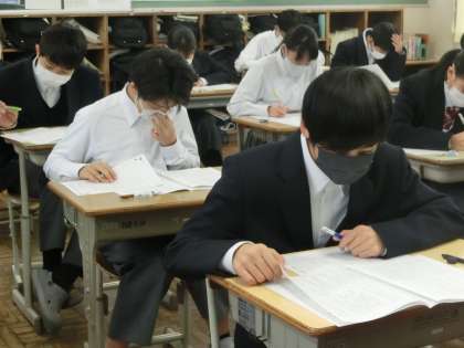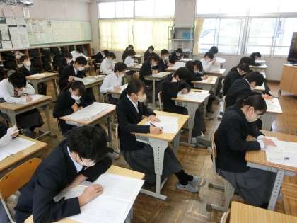 本日、豊田・みよし地区統一で行われる学習診断テストが実施されました。1年生にとっては、初めての実力テストです。これを機会に、今の学年での学習を総復習し、進級の準備を進めてほしいと思います。