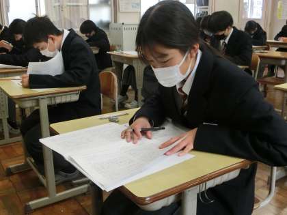 本日、豊田・みよし地区統一で行われる学習診断テストが実施されました。1年生にとっては、初めての実力テストです。これを機会に、今の学年での学習を総復習し、進級の準備を進めてほしいと思います。