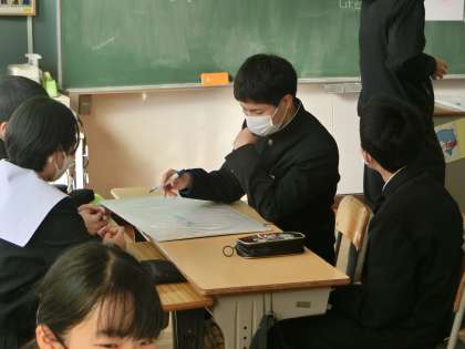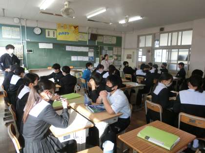 この1月に代わったばかりのALTとコミュニケーション活動の授業でした。全て英語での説明でしたが、グループで協力し、ゲームでは盛り上がりを見せていました。
