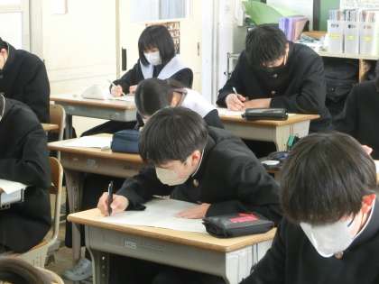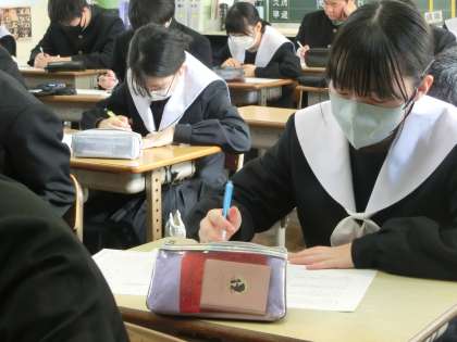 2週間後に実施予定の義務教育最後のテストとなる「確認テスト」に向けて、様々な問題にチャレンジしています。もちろん入試対策も兼ねたこのテスト。本番前の力試しとして、自然と力が入ります。