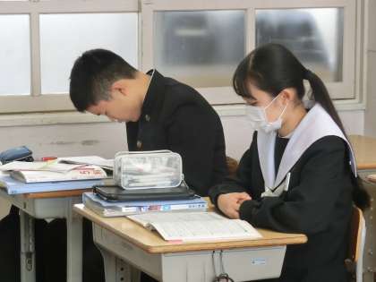 2週間後に控えた義務教育最後のテストとなる「確認テスト」に向けて学習に励んでました。個人でひたすら問題を解いている生徒、仲間や教科担任に気軽に質問している生徒など様々です。リラックスした雰囲気であっても、集中力が増す環境…。 勉強をするには最適な環境です。