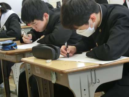 入試対策のプリントに取り組んでいました。授業の切り替えはもちろん、短時間で集中力を高いところまでもっていく方法を身につけてきたようです。家に帰ってからもぜひ実践してほしいと思います。