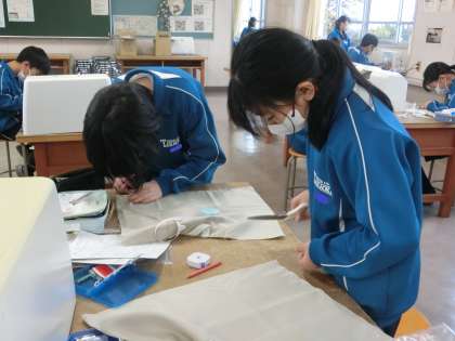裁縫の学習で「エコバッグ」の製作に取り組んでいました。回を重ねるごとに上達してきたミシンの操作。それぞれが一人で活動を進めていけるようになってきました。
