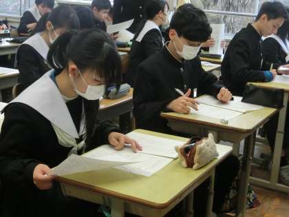 入試と確認テストに向けて学習に励んでいました。いつもどおりの仲間との教え合い、個人でみっちり学習の2パターンに分かれていますが、今日はちょっと雰囲気が違った印象でした。明日に入試を控えた生徒たちに配慮していた感じです。