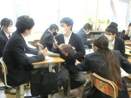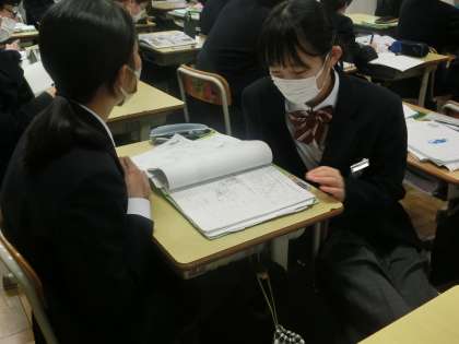 定期テストに向けての勉強に取り組んでいました。他のクラスとは少し雰囲気が違います。様子を見ていると、お互いが問題を出し合って、クイズのように答えています。学習してきた内容を確認できます。また、定着していなかった知識も印象付けて覚えられるようになります。