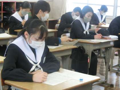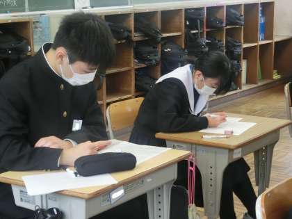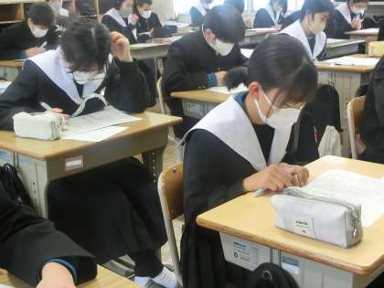 先週行われた学習診断テストの解説が行われていました。単なる問題の解説だけでなく、正答率を上げる方法や問題を解く順番などにも触れていました。このテストを通して、勉強は授業だけでなく、日頃から読書や新聞を読むことも重要であることを感じていたようです。