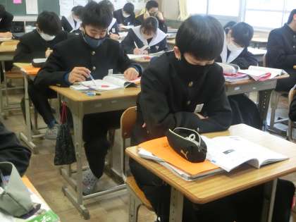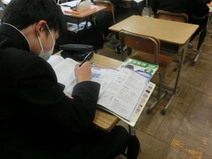 明日から始まる定期テストに向けて、最後の追い込みをしていました。今日の夜、家でも落ち着いて学習に向かえるよう、休日の家庭学習で疑問になった部分を解決していきます。本番当日、焦らずに答えを導き出せるよう、その対策もしっかりとしてほしいと思います。