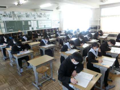 写真は、2年1組のテスト初日の様子です。