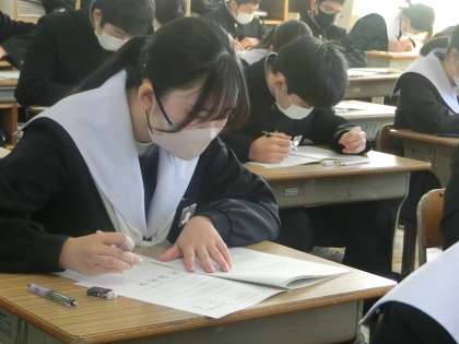 写真は、2年2組のテスト初日の様子です。
