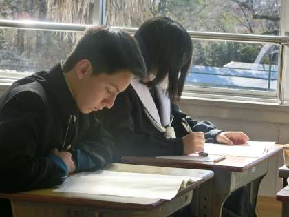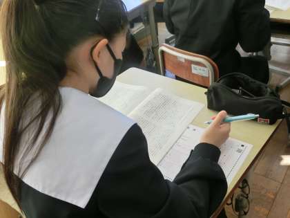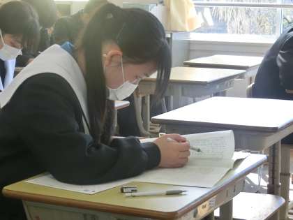 公立高校の推薦入試の受検に出かけている生徒がいるため、教室はいつもより少し寂しい感じがしましたが、一般入試に向けての学習に一生懸命取り組んでいます。すでに私立高校・専修学校の合格を手にしている生徒もいますが、仲間を応援するため、同じモチベーションで学習に取り組んでいます。