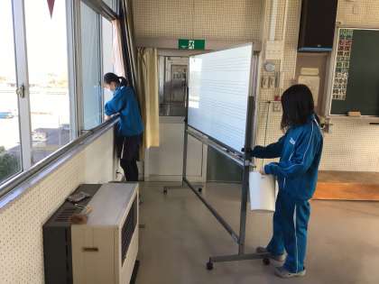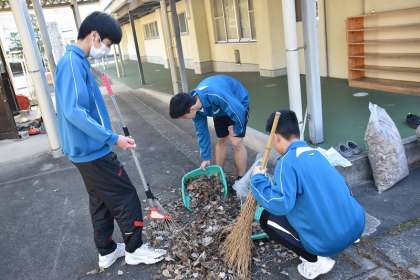 冷たい水や風、大量のほこりや落ち葉、なかなか落ちない頑固な汚れ… 辛いはずの作業も笑顔で取り組む3年生の様子は、「立つ鳥 あとを濁さず」を超え、「立つ鳥 心を残す」といったところです。