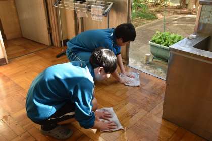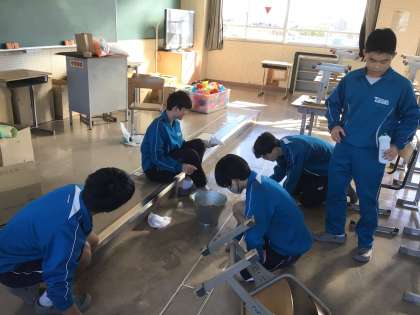 冷たい水や風、大量のほこりや落ち葉、なかなか落ちない頑固な汚れ…  辛いはずの作業も笑顔で取り組む3年生の様子は、「立つ鳥 あとを濁さず」を超え、「立つ鳥 心を残す」といったところです。