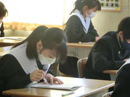 2年2組の第4回定期テスト最終日の様子です。